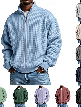 Hombre Sudadera Sudadera con estampado de gofres Sudadera Con Capucha Pull-over Sudadera con cremallera completa Albaricoque Negro Blanco Verde Claro Verde Ejército Cuello Mao Plano Con Texturas