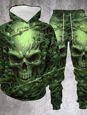 Conjuntos de sudadera 2pcs 3D para hombres calaveras chándal sudadera con capucha manga larga pantalones largos casual diario street athleisure 3D Print Primavera Otoño Invierno Verde