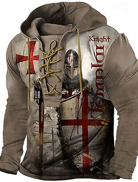 Hombre Caballeros templarios Estampados Cruz Sudadera Sudaderas Ropa de calle Design Casual Grande y alto Manga Larga Con Capucha Diario Deportes Caqui Estampado Primavera & Otoño Diseñador S M L XL