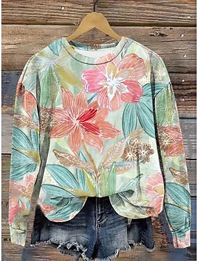 Mujer Sudadera Floral Graphic Casual Manga Larga Cuello Barco Tops regulares Casual Hogar Trabajo Azul Piscina Morado Marrón Verde Trébol Azul Oscuro Primavera Otoño Invierno