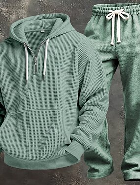Hombre Sudadera Sudadera con capucha y diseño de gofres Sudadera con capucha y cremallera de un cuarto Blanco Verde Claro Verde Ejército Rojo Azul Marino Con Capucha Plano Bolsillo canguro Con