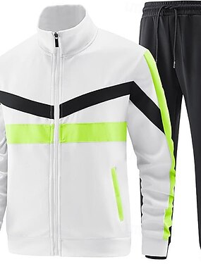 Hombre A Rayas Geométrico 2 piezas Conjuntos de sudaderas 3D Chándal Sudaderas con cremallera Manga Larga Pantalones largos Escote Chino Casual Exterior Vacaciones Casual Impreso Cerrar Primavera