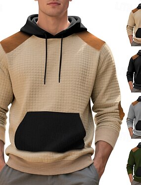 Hombre Sudadera Sudadera con capucha y diseño de gofres Sudadera Con Capucha Negro Verde Ejército Azul Marino Caqui Gris Claro Con Capucha Plano Retazos Bloque de Color Con Texturas Deporte Casual