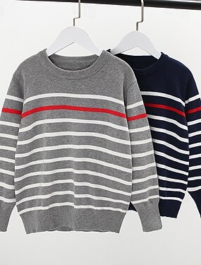 Niños Chico Suéter de punto Raya Manga Larga Cuello redondo Exterior Moda Azul Marino Otoño Ropa 4-12 años