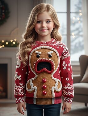 Navidad Chica 3D Los hombres de pan de jengibre Suéter navideño feo regalo de Navidad Pulóveres Manga Larga Impresión 3D Otoño Invierno Moda Fiesta Niños 4-12 años Cuello Barco Exterior Diario Ajuste
