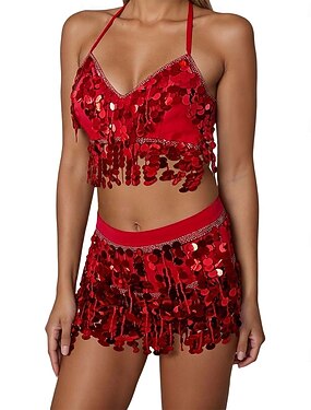 Conjunto de Danza del Vientre con Lentejuelas y Cuentas de Samba Dancewear - Vestuario de Performance