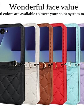 teléfono Funda Para Samsung galaxia Z Flip 7 Z Flip 6 Z Flip 5 Z Flip 4 Funda Trasera con cordón Ranura para tarjetas Antigolpes Retro TPU Cuero de PU