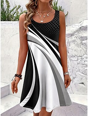 Mujer Vestido Midi Vestido de verano Vestido de cambio Vacaciones Casual Estilo playero Playa Noche Holgado Graphic Geométrico Sin Mangas Cuello redondo Amarillo Claro Naranja Verde Trébol Verano