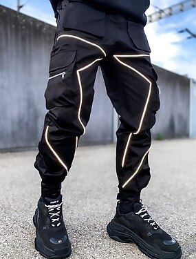 Hombre Pantalones cargo Pantalones Pantalones casuales Correa Multi bolsillo Banda reflectante Plano Comodidad Suave Longitud total Exterior Diario Noche Moda Ropa de calle Negro Blanco Microelástico