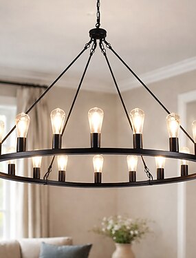 candelabro led negro sobre ruedas candelabro de campo rústico redondo grande de 20 luces lámpara industrial para comedor sala de estar cocina isla vestíbulo pasillo