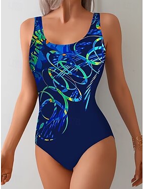 Traje de baño mujer de una pieza moldeador monokini braguitas control de abdomen cintura alta esbelto sin espalda vacaciones vintage ombre gráfico escote en U sin mangas
