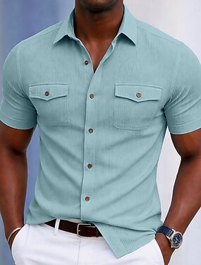 Hombre Camisa Camisa casual Camisa de Pana Abotonar la camisa Negro Blanco Amarillo Azul Marino Marrón Manga Corta Plano Con Texturas Cuello Camisero Casual Diario Bolsillo delantero Ropa Elegante