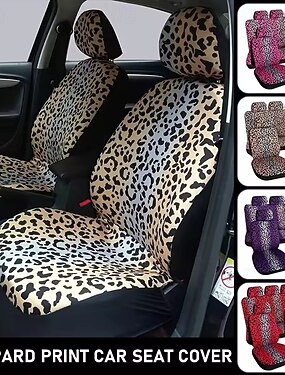 Juego completo de fundas para asientos de coche con estampado de leopardo, protector de asiento universal con estampado de guepardo para mujeres y niñas, fundas para asientos delanteros y traseros con