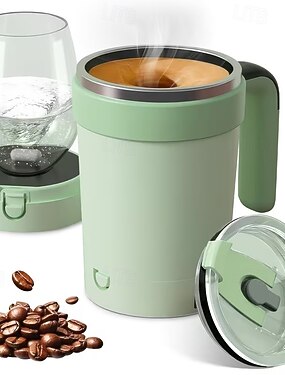 Taza para mezclar café, recargable por USB, magnética, automática, de acero inoxidable 304, con sello a prueba de fugas, resistente al hielo y al calor, para beber directamente o con pajita, tapa de