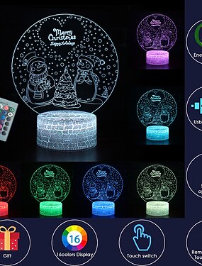 luces de regalos de navidad para niños luces de noche 3d con cambio de 16 colores &Control remoto de Navidad para niñas y niños (árbol de Navidad).