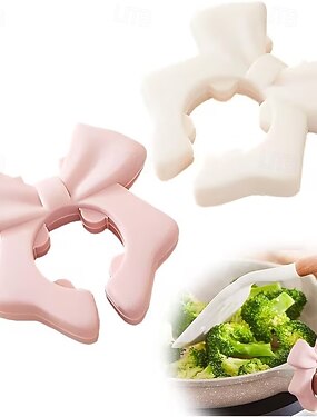 2 soportes de tapa de olla de silicona con forma de lazo, bonito diseño de lazo rosa, agarre seguro para cucharas &Batidores, soporte para utensilios de cocina, soporte para utensilios de cocina,
