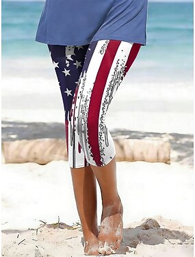 Leggings chinos para mujer, diseño del Día de la Independencia de Estados Unidos, para vacaciones, moda informal, hasta la pantorrilla, cintura media, cómodos, suaves, elásticos, para uso diario,