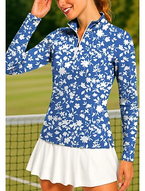 Mujer Flores Camisas de polo Camiseta de tenis Tee de tenis Manga Larga Estampado Cremallera de un cuarto Pullover Protección UV Elástico Transpirable Voleibol Tenis Golf Cuello Mao Cuello con