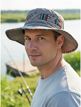 Sombrero de pescador de mezcla de algodón de estilo bohemio para hombre con patrones étnicos, diseño multicolor: perfecto para uso diario informal y viajes de vacaciones.