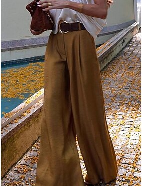 Mujer Perneras anchas Chinos Corte Recto Elegante Vacaciones Vintage Longitud total Media cintura Plano Retazos Bolsillo Confortable Comodidad Cómodo Rígido Diario Hogar Exterior Amarillo Marrón Caqui