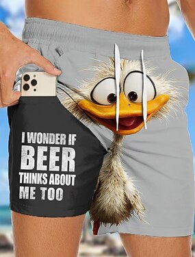 Hombre Gracioso Pato Argot divertido Pantalones cortos forrados Bañador 2 en 1 Pantalones de Natación Media cintura Hawaiano vacaciones en la playa Bolsillos laterales con forro de compresión Cintura