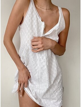 Mujer Bata de noche Casual Confort Color puro Diario Hogar Sin Mangas Escote en Pico Blanco Rosa Verano Primavera Ajuste regular