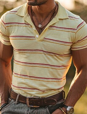 Hombre Tiras horizontales Línea Camisetas polo Manga Corta Camisas de polo Camisas con cuello Casual Ropa Deportiva Ropa Cotidiana Botones Primavera verano Azul Piscina Amarillo Verde Trébol