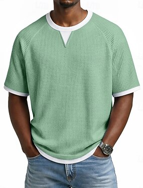 Hombre Camiseta con diseño de gofre Camiseta superior Manga Corta Escote en Pico Verano Primavera Todas las Temporadas Color sólido Con Texturas Moda Design Casual 2 en 1 Mangas raglanes Casual