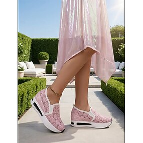 Zapatos planos de cuña con purpurina rosa para mujer: cómodos zapatos planos brillantes sin cordones para salidas informales, fiestas y uso diario.