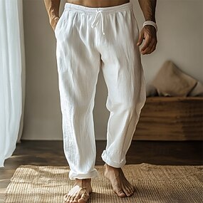 Hombre Pantalones de lino Pantalones Pantalones de verano Pantalones de gasa Correa Cintura elástica Pierna recta Plano Comodidad Transpirable Longitud total Hogar Casual Diario Moda Estilo clásico