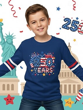 Chico 3D Graphic 250 aniversario Camiseta Manga Larga Impresión 3D Primavera Otoño Deportes Moda Ropa de calle Niños 4-12 años Cuello Barco Casual Diario Exterior Ajuste regular