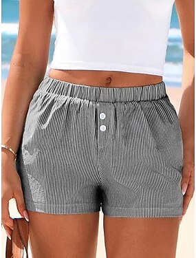 Mujer Lino de algodón sintético Pantalón corto Pantalones cortos de verano Pantalones cortos de playa Vacaciones Ropa de calle Casual Corto Alta cintura A Rayas A rayas Confortable Comodidad Elástico