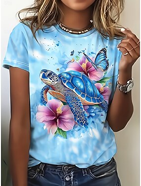Mujer Camiseta Estampado Graphic Animal Vintage Elegante Clásico Manga Corta Cuello Barco Tops regulares Diario Fin de semana Azul Piscina Negro Blanco Verano Primavera Otoño Invierno