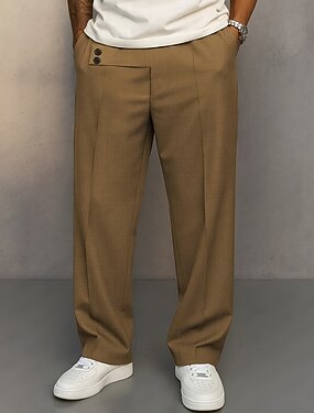 Hombre Pantalones pantalones de traje Bolsillo Botones Plano Comodidad Transpirable Longitud total Casual Diario Hogar Vacaciones Moda Negro Caqui Rígido