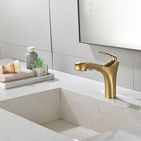 Grifo para lavabo de baño, monomando oro rosa/negro/oro cepillado/latón/níquel rústico grifo galvanizado de un orificio con agua fría y caliente