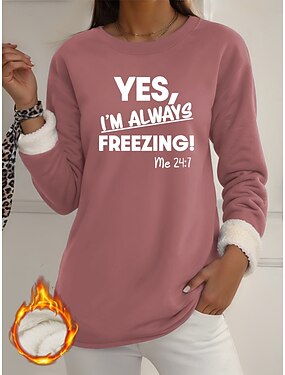 Mujer Pijama tipo sudadera con forro polar Letra Cálido Borroso Manga Larga Escote Redondo Cuello redondo Tops largos Casual Deportes Azul Piscina Negro Amarillo Rosa Gris Otoño invierno