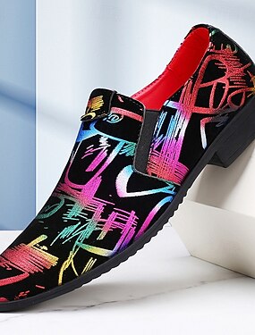 Mocasines de piel sintética con estampado de grafitis coloridos para hombre: comodidad sin cordones, diseño elegante e informal, ideal para uso diario, oficina y fiestas.