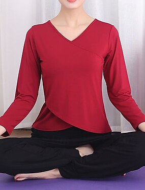 Mujer Camisetas deportivas parte superior de pilates Top deportivo escote en V Agradable para la piel Secado rápido Suavidad Malla Manga Larga Deportes Color sólido Camiseta por Pilates Yoga Ropa de