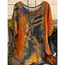 Camisa de mujer similar al lino transpirable ligera camisa de túnica abotonada cuello de camisa de manga larga gráfica casual tops regulares diarios estampado de trabajo naranja primavera otoño |