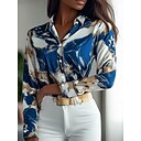 Mujer Camisa Blusa Blanco Azul Marino Arco Iris Graphic Floral Estampado Manga Larga Casual Diario Vintage Tropical Cuello Camisero Regular Flor S |