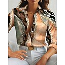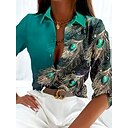 Camisa de mujer de manga larga tipo blusa con botones elegante estilosa de negocios impresión tops regulares cuello de camisa trabajo verde verano otoño invierno |