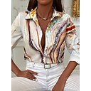 Camisa de Mujer Simil Lino Transpirable Ligera Camisa Tunic con Botones Cuello Manga Larga Gráfico Mármol Diario Estilo Largos Tops Diario s Print Marrón Claro Primavera |