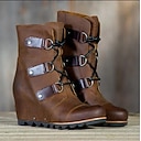 Botas de cuña de piel sintética para mujer con tiras con cordones: calzado elegante y duradero para aventuras al aire libre y uso diario |