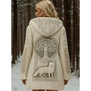 Mujer Cárdigan Vintage Ropa de calle Diario Geométrico Cable Con Capucha Acordonado Manga Larga Tops largos Tejer Trabajo Festivos Noche Caqui Otoño Invierno |