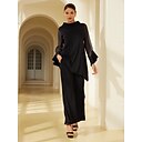 Conjunto de blusa y pantalón de manga larga con cuello alto y puños acampanados de gasa modal para mujer, elegante para uso diario. |