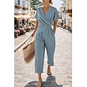 Mujer Conjuntos de pantalones parte superior del bolero Manga Corta Escote en Pico Plano Frunce Elegante Moda Ropa de calle Casual Diario Exterior Azul Piscina Caqui Beige Verano Ajuste regular |