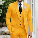 De los hombres Smoking Trajes boda en la playa Boda de primavera Amarillo Salvia Primavera verano Traje Solapa de Pico Vestidos Color sólido Ajustado Juego de 3 piezas Recto 2 botones |