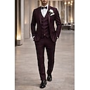 De los hombres Smoking Trajes de fiesta Fiesta de baile Boda Burdeos Primavera, Otoño, Invierno, Verano Traje Solapa de Muesca Lujo Formal Color sólido Estándar Juego de 3 piezas Recto 1 botón |