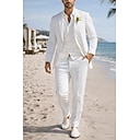 De los hombres Smoking Trajes boda en la playa Boda de primavera Blanco Primavera verano Traje Solapa de Pico Casual Formal Color sólido Estándar Juego de 3 piezas Recto 1 botón |