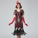 Rugido 20s 1920s Hasta la Rodilla Vestidos Vestido Flapper Vestido de fiesta de graduación Mangas casquillo El gran Gatsby charlestón Lentejuelas Retazos Camiseta con cuello redondo Disfraz Mujer |